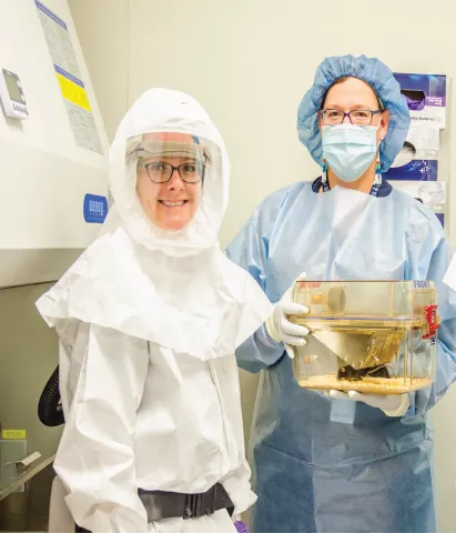 A doctoral student at Northern Arizona University, Heather and her colleagues work in a “biohazard level 3” laboratory where they take extreme precautions to confine the fungus. This is the same level of care needed to study the SARS –CO2 virus that causes COVID-19. So when the pandemic hit in March last year, in one week over spring break Heather’s mentor, Dr Bridget Barker, converted the lab into a COVID research facility. They had the equipment required to keep researchers—and the community—safe, but they didn’t have an animal in which to test new remedies. Enter Jackson Labs, in Bar Harbor, ME, which had cultivated a mouse that was susceptible to human COVID. Then a Chinese scientist who had previously conducted COVID research came to organize COVID-specific lab materials. The NAU team then offered to partner with other scientists looking for a place to do their COVID-related work.
